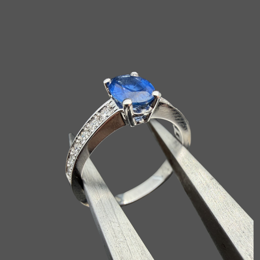 Bague solitaire saphir et diamants or blanc 18 carats 0,93 ct – Diamants 0,23 ct