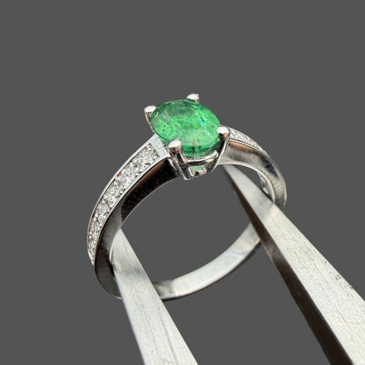 Bague solitaire émeraude et diamants or blanc 18 carats 0,64 ct – Diamants 0,24 ct