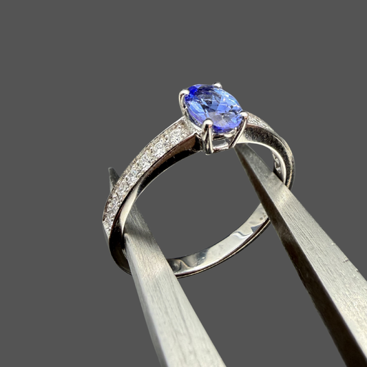 Bague solitaire tanzanite et diamants or blanc 18 carats 0,50 ct – Diamants 0,17 ct