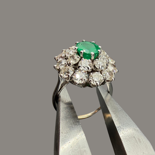 Occasion - Bague Emeraude Entourage Diamants