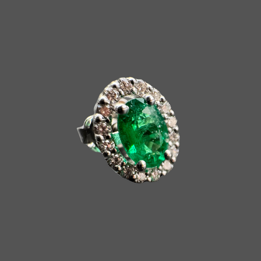 Bague Marquise en Or Jaune, Émeraude & Diamants